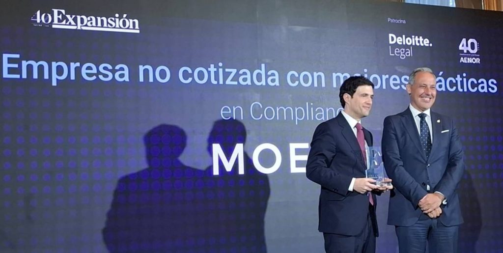 En el marco de la ceremonia, el Decano del ICAM hizo entrega del premio a la empresa no cotizada con mejores prácticas en compliance 2025, que fue concedido a MOEVE, poniendo en valor la importancia de integrar la ética y el cumplimiento en la estrategia empresarial.