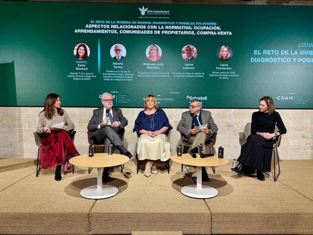 La tercera mesa, inaugurada por la diputada Ester Mocholí, abordó los aspectos normativos: ocupación, arrendamientos, comunidades de propietarios y compra-venta. Intervinieron Alberto Torres, presidente de la Sección de Arrendamientos Urbanos, PH e Inmobiliario del ICAM; Manuela Julia Martínez, Presidenta del Colegio Profesional de Administradores de Fincas de Madrid; Jaime Cabrero, presidente del Colegio de Agentes de la Propiedad Inmobiliaria de Madrid; y Laura Fernández, Directora General de ASVAL. En esta mesa se analizaron la ocupación ilegal, la regulación de contratos de arrendamiento, los conflictos entre arrendadores y arrendatarios, y los procesos de compra-venta, destacando la necesidad de incrementar la seguridad jurídica para favorecer la disponibilidad de vivienda.