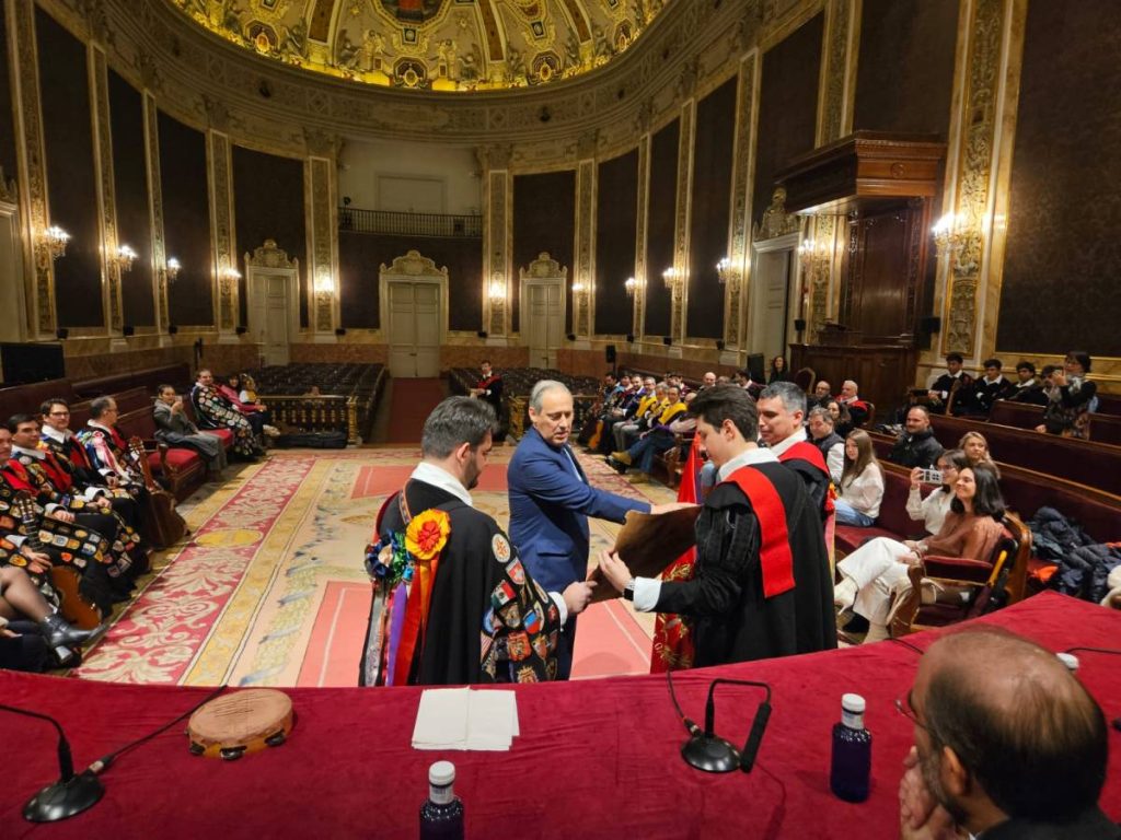 El Convinium Iuramentorum, celebrado este año en el Paraninfo de la Universidad Complutense de Madrid, reunió a destacadas personalidades del ámbito académico y jurídico, constituyendo uno de los actos más representativos del calendario institucional de la tuna.