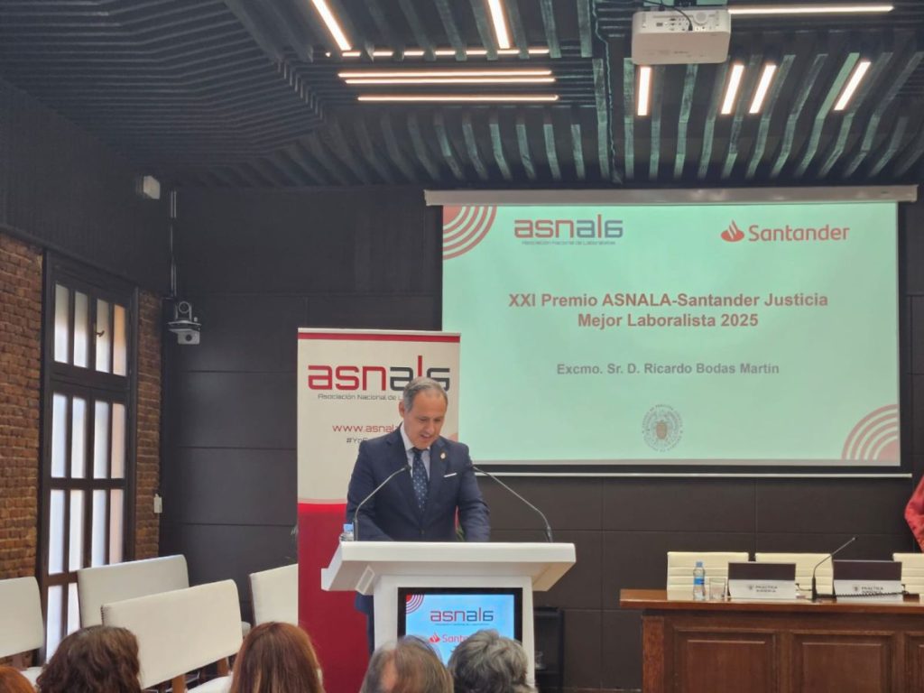 El Premio ASNALA-Santander Justicia al Mejor Laboralista, en su vigésimo primera edición, reconoce la labor de profesionales de referencia en el ámbito del Derecho del Trabajo. En esta ocasión, el jurado decidió por unanimidad conceder el galardón a Ricardo Bodas Martín, exmagistrado del Tribunal Supremo y actual vocal del Consejo General del Poder Judicial.