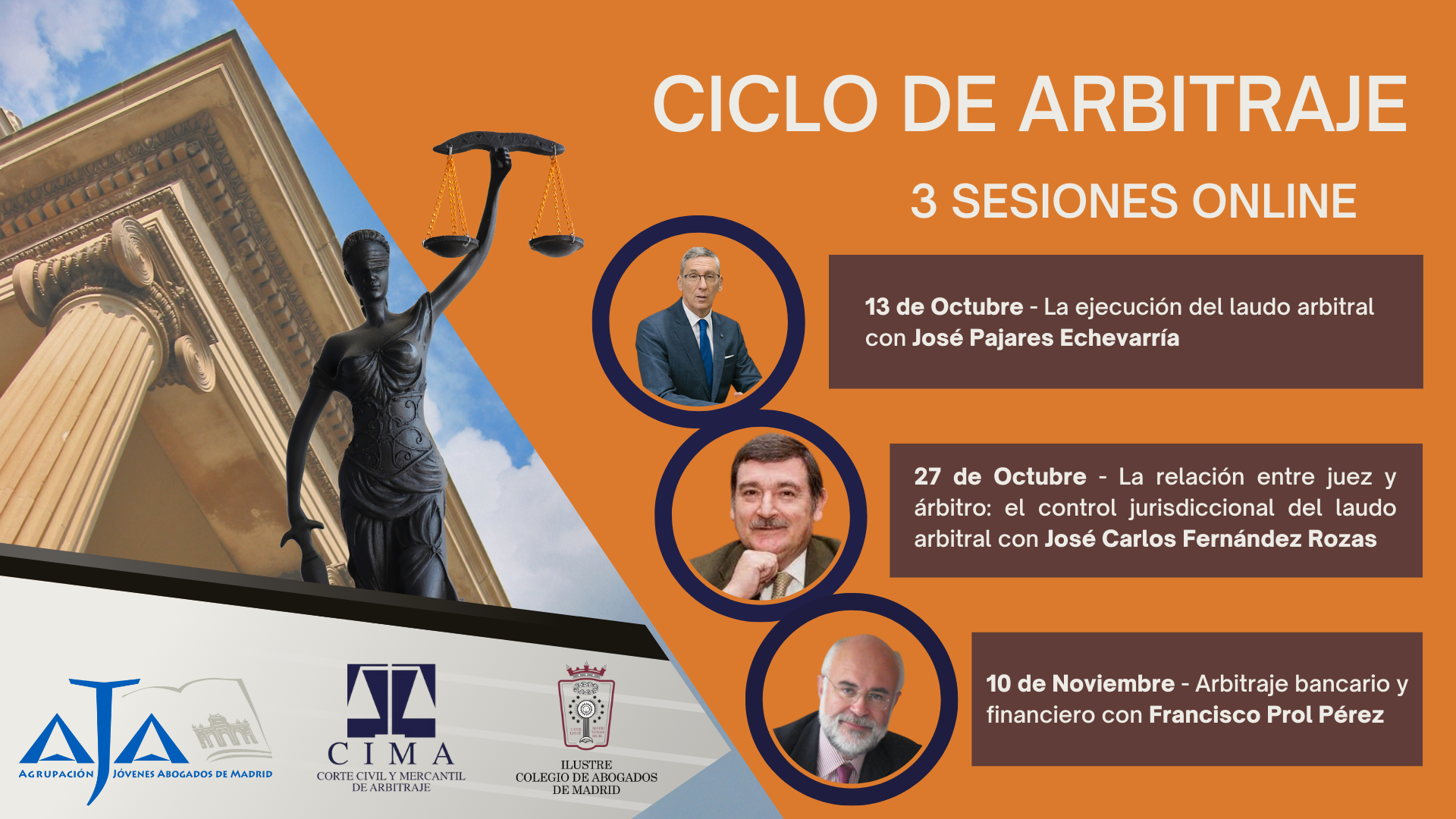 Las sesiones son totalmente gratuitas. También darán la oportunidad a los inscritos de conocer la institución de CIMA, que lleva más de 30 años apoyando en la resolución arbitral de controversias de ámbito civil y mercantil, en un contexto en el que los juzgados están saturados y no puede garantizarse una sentencia rápida que sea lo suficientemente eficaz para resolver los conflictos.
