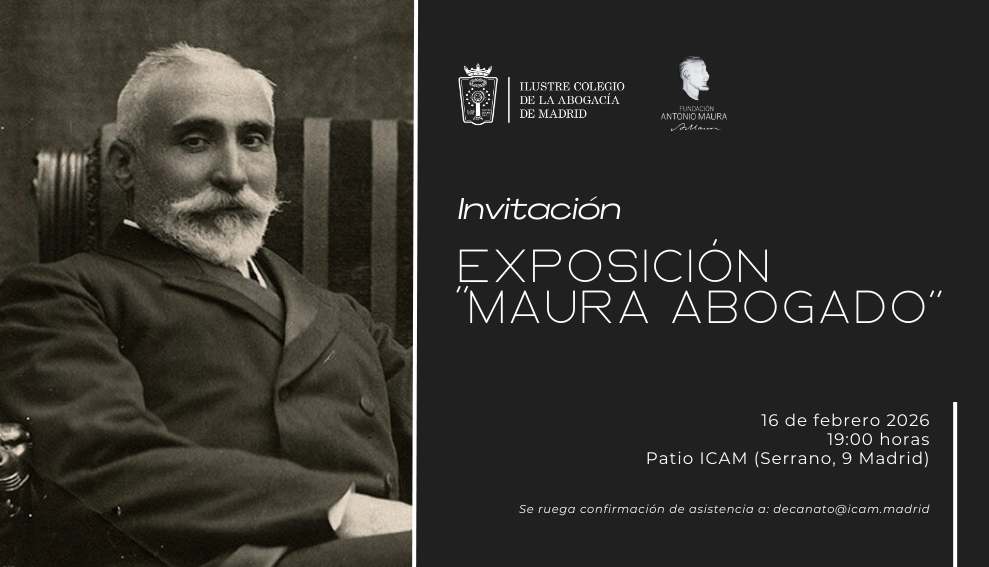 El Ilustre Colegio de la Abogacía de Madrid (ICAM) inaugurará el próximo lunes 16 de febrero, a las 19:00 horas, la exposición “Maura Abogado”, una muestra organizada conjuntamente por el ICAM y la Fundación Antonio Maura que podrá visitarse en el Patio del ICAM (Serrano, 9) hasta el 27 de febrero.