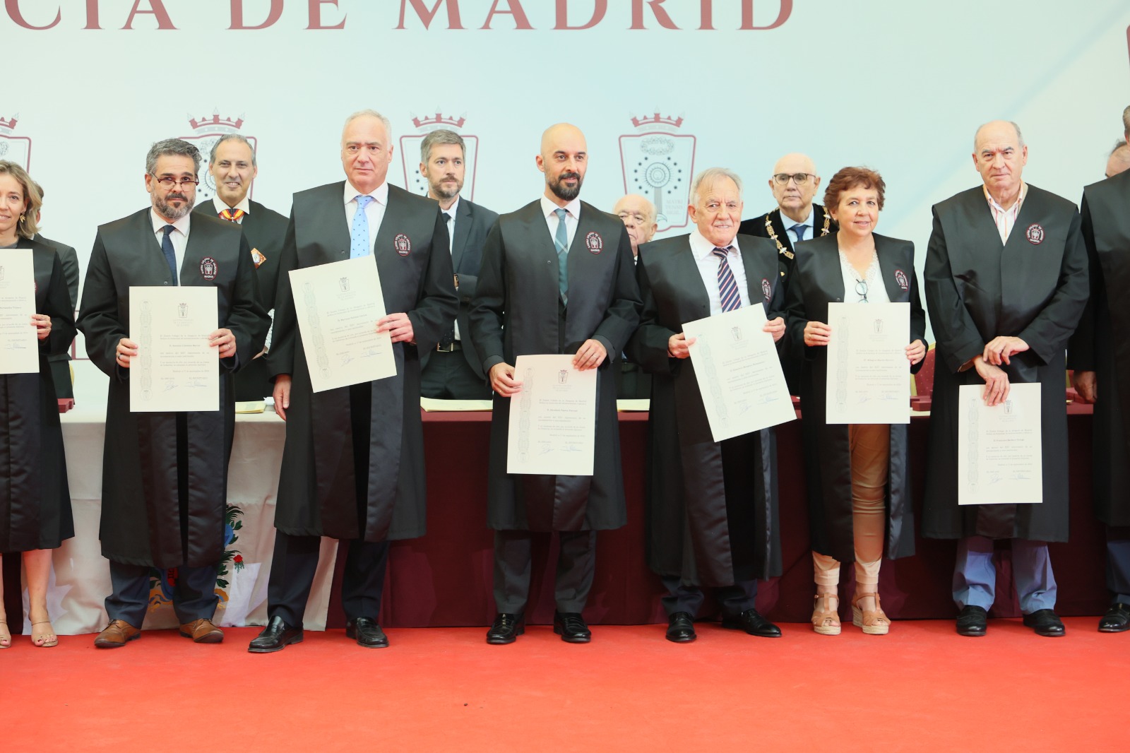 Cerca de 400 profesionales de la abogacía con 25, 50 y 60 años de colegiación han recibido esta tarde un multitudinario homenaje del ICAM en