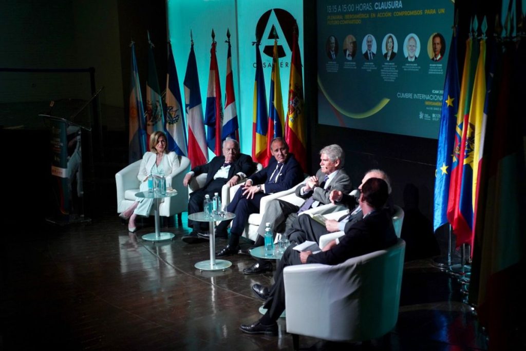 En la mesa plenaria de clausura, Alfonso Dastis, embajador de España en Hungría y exministro de Asuntos Exteriores del Gobierno de España, inauguró el debate poniendo en duda la existencia de Iberoamérica como una verdadera unidad política o institucional. “Iberoamérica no existe como realidad política o institucional, como realidad de integración de una región, no por falta de intentar…”, afirmó. Comparó la región con la Unión Europea, que ha alcanzado cohesión gracias a un compromiso político duradero y un sólido sistema jurídico, aspectos aún débiles en Iberoamérica. Asimismo, señaló la influencia de Estados Unidos como un factor que contribuye a la fragmentación regional.