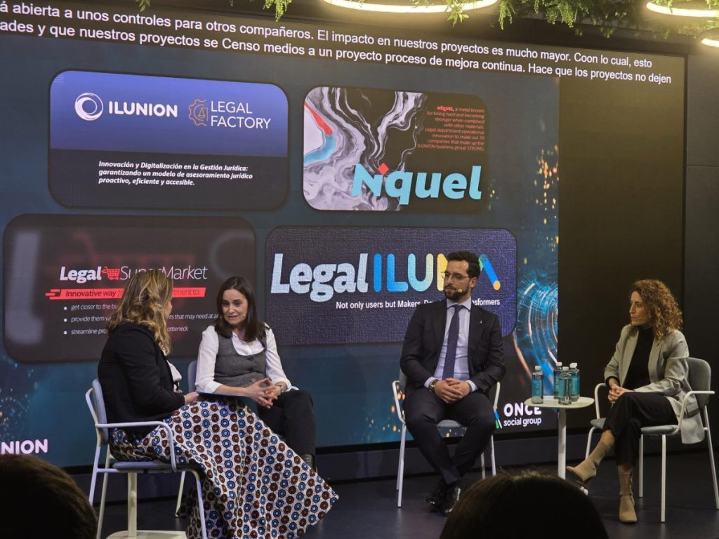 A continuación, distintos profesionales del área jurídica de la empresa participaron en un bloque dedicado a la innovación y la tecnología aplicada al ejercicio del Derecho, centrando sus intervenciones en el uso de herramientas de Legaltech y de inteligencia artificial en el entorno corporativo. En esta parte del encuentro intervinieron Laura Arnáez, abogada responsable de operaciones legales de ILUNION; Jorge Almansa, abogado responsable de inteligencia artificial en la compañía; y Laura Toranzo, abogada del departamento mercantil. En este marco se presentó una plataforma tecnológica única que integra los procesos de gestión jurídica de la compañía y que incorpora sistemas de inteligencia artificial desarrollados a partir de documentación generada o validada por la propia organización.